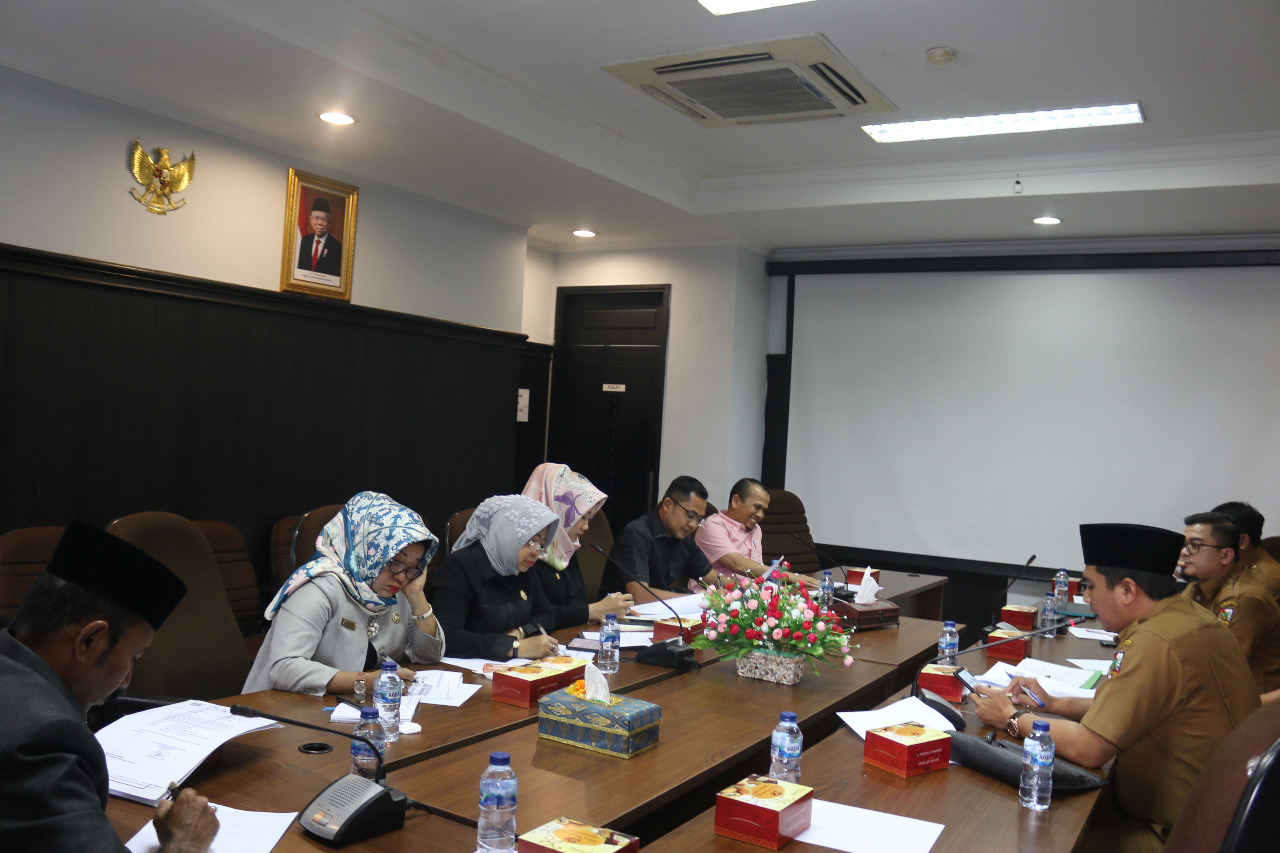 Kepala Bapenda Pekanbaru Zulhelmi Arifin (kanan pakai peci), saat memaparkan kondisi PAD Pekanbaru kepada anggota Komisi II DPRD Pekanbaru, dalam hearing Senin (13/01/2020).