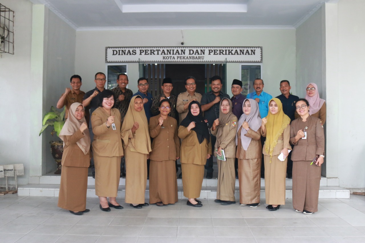 Anggota Pansus SOTK DPRD Pekanbaru, foto bersama dengan pejabat Dinas Pertanian dan Perikanan (Distan) Pekanbaru, saat kunjungan kerja, Selasa (14/1/2020) di depan Kantor Distan.