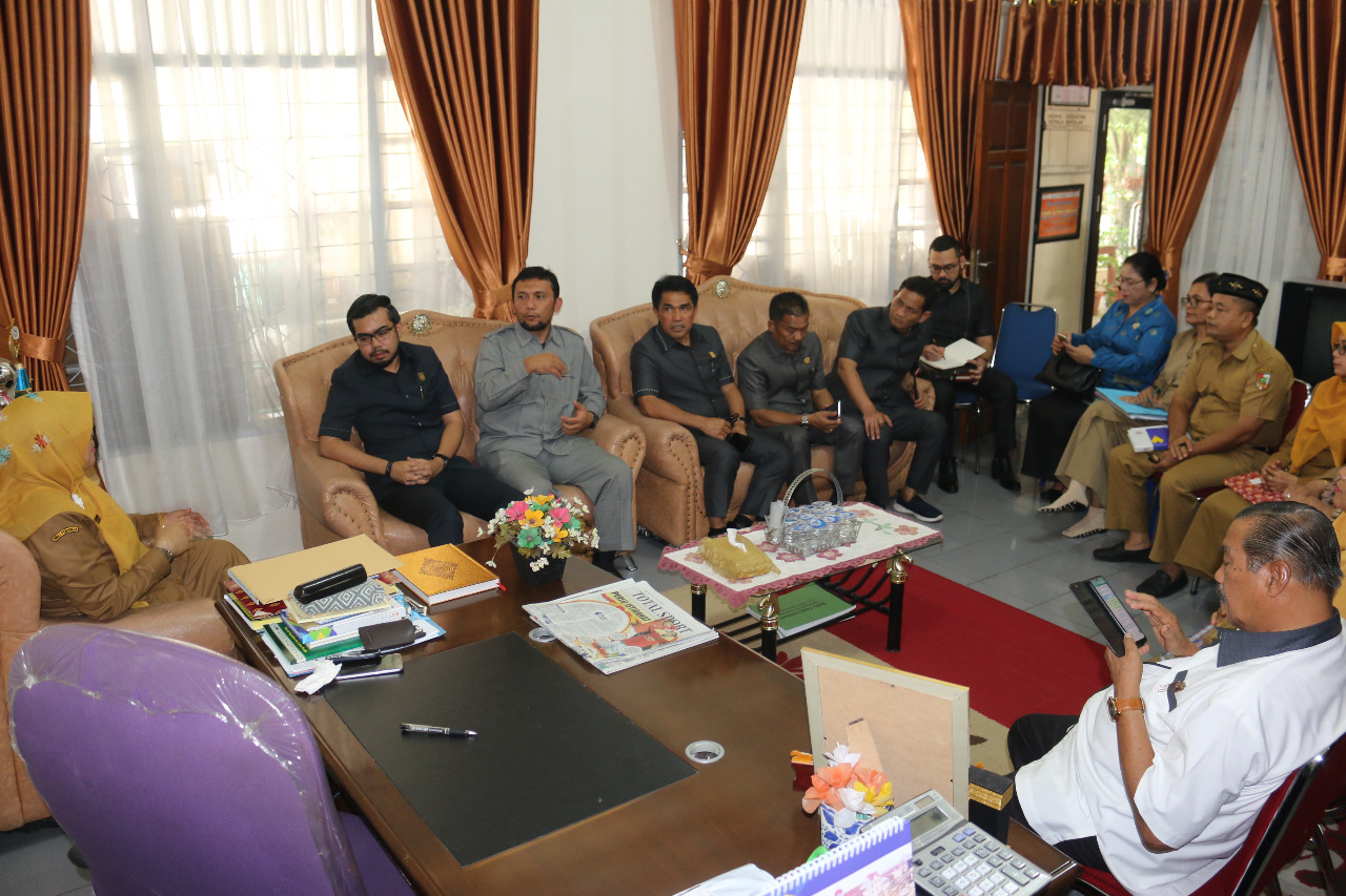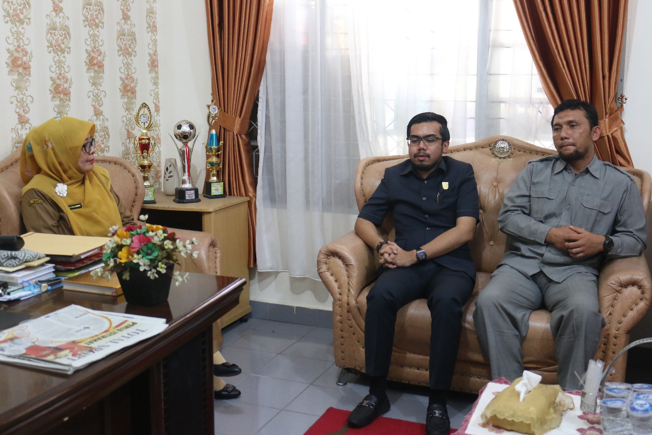 Kepala SMPN 10 Pekanbaru, Raja Izda Chairani beserta majelis guru menerima kunjungan anggota Komisi III DPRD Pekanbaru, serta Wakil Ketua Ginda Burnama di ruang kerjanya, Senin (3/2/2020).
