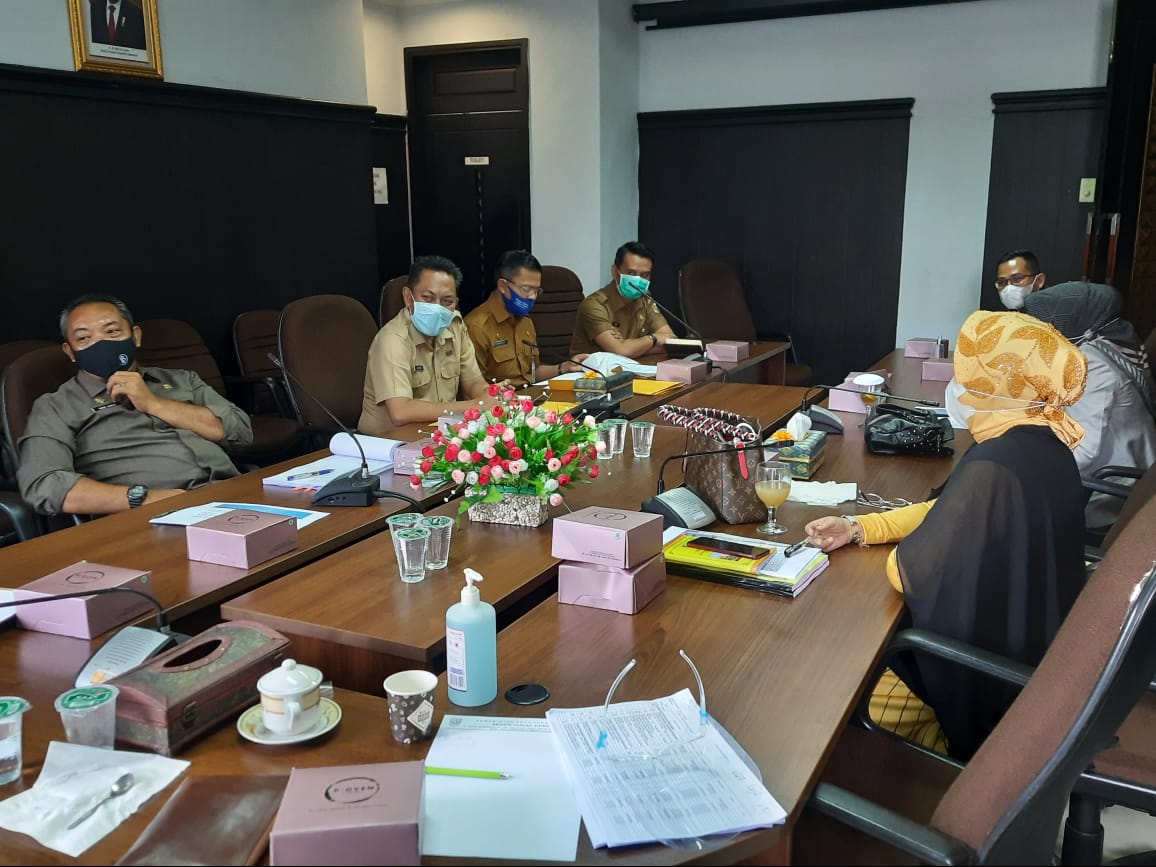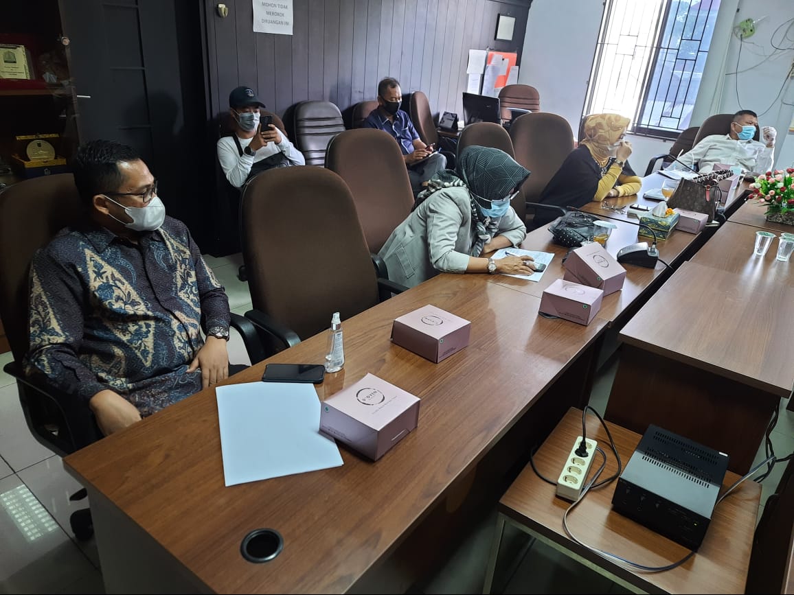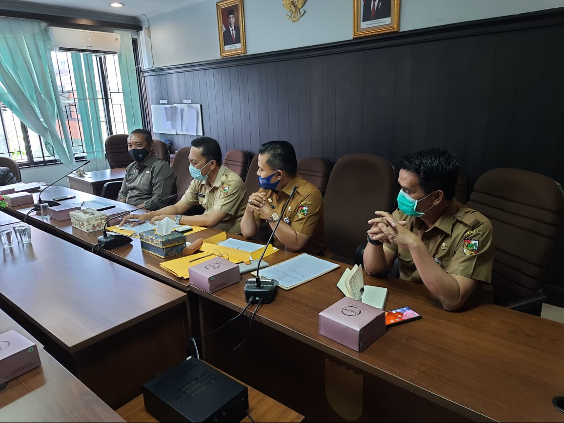 Para pejabat Disperindag Pekanbaru yang dipimpin Kadisperindag Ingot Ahmad Hutasuhut, saat hearing dengan Komisi II Senin (21/9/2020), di ruang Komisi II DPRD Pekanbaru.