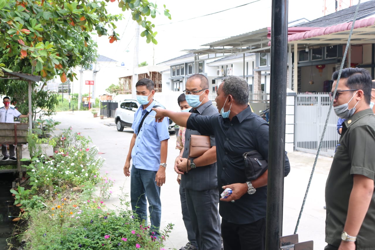 Anggota Komisi IV DPRD Pekanbaru bersama warga Villa Karya Bakti Hausing (KBH), di Jalan Karya Bakti Ujung Kelurahan Air Hitam, Kecamatan Payung Sekaki, kunjungan lapangan meninjau Fasos, Selasa (20/10).