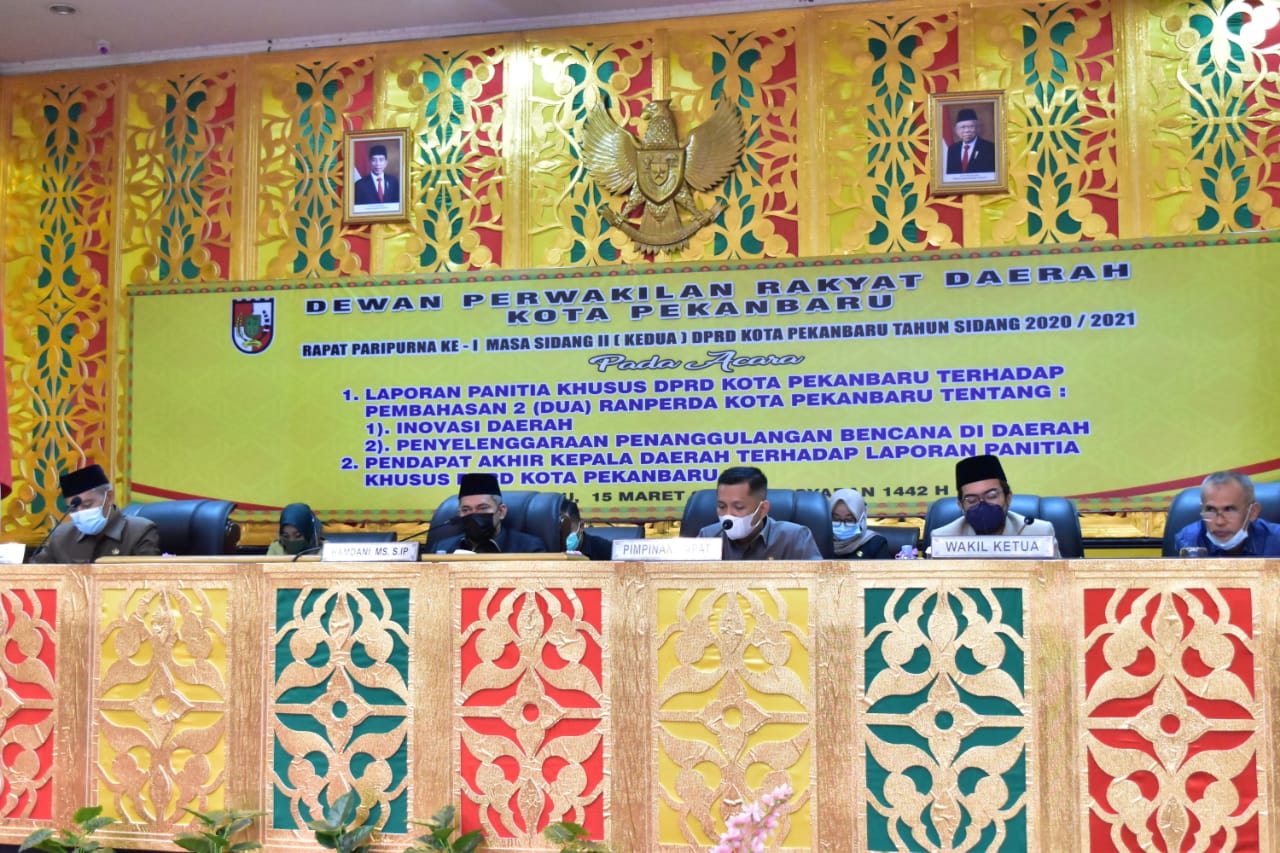 Paripurna Pengesahan Ranperda Inovasi Daerah dan Ranperda BPPD menjadi Perda Kota Pekanbaru, Senin (15/3/2021) .