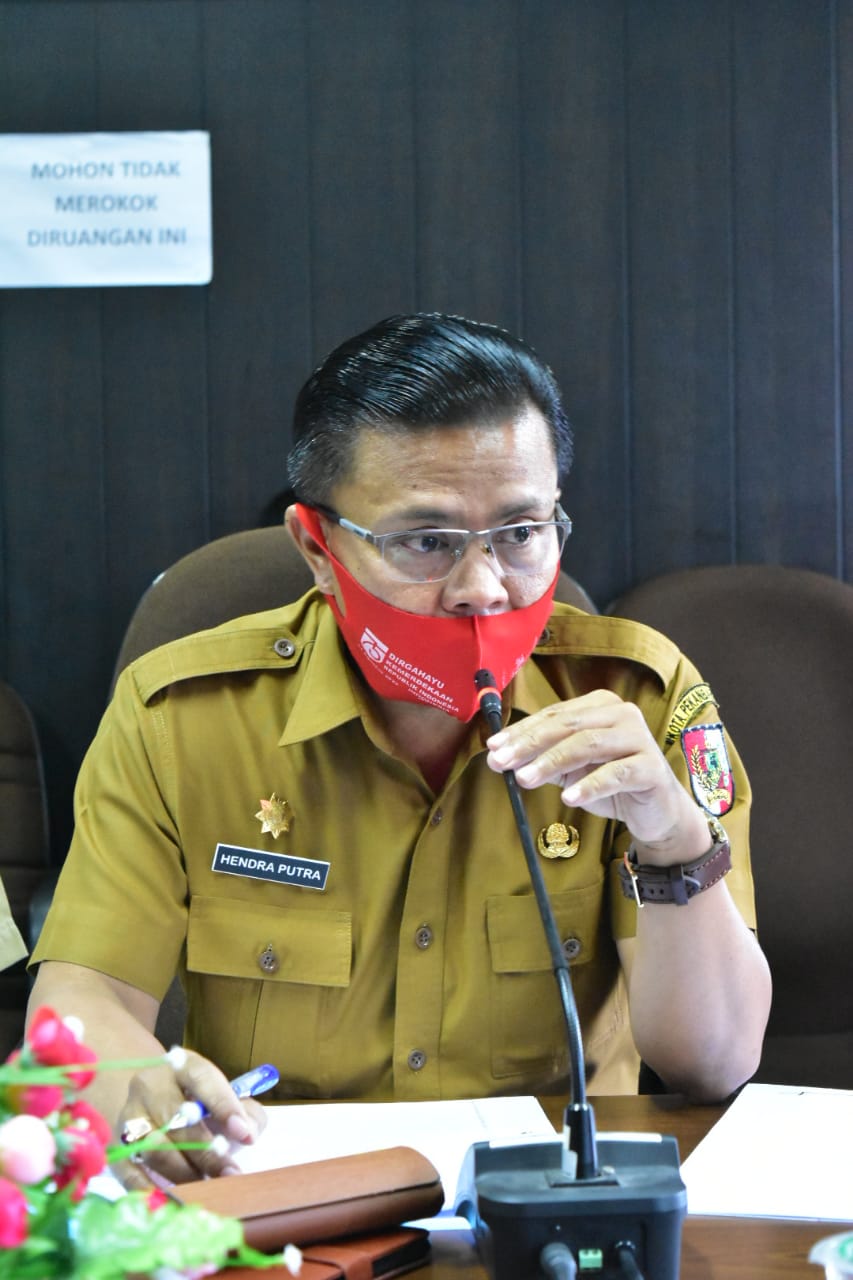 3. Kabid Pasar Disperindag Pekanbaru Hendra Putra, saat menjawab pertanyaan dari anggota Komisi II DPRD Pekanbaru, dalam hearing, Kamis (15/4/2021).