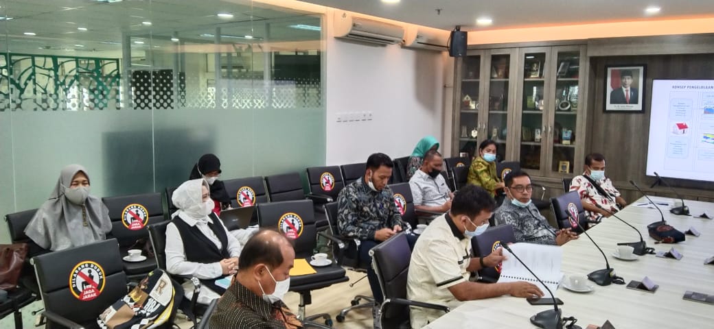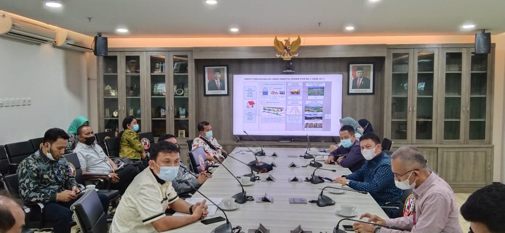 Perwakilan Pejabat Dirjen Cipta Karya Kementerian PUPR (kanan), saat menyambut Tim Pansus Ranperda Instalasi Air Limbah Domestik, Pansus DPRD Pekanbaru di gedung Kementerian PUPR Jakarta, Jumat (4/6/2021).