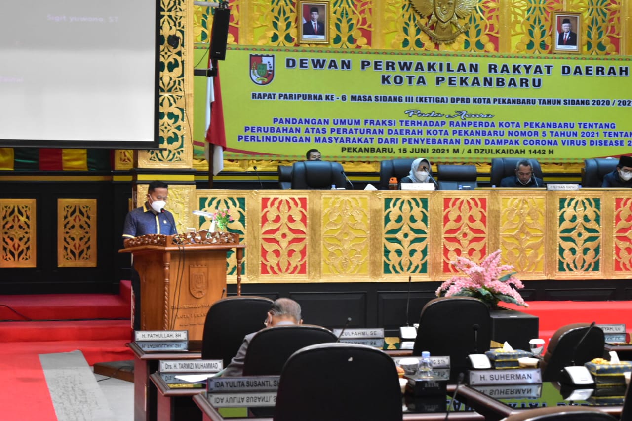 Setelah penyampaian Perda kemarin, DPRD Pekanbaru pada Selasa (15/6/2021), menggelar Rapat Paripurna Pandangan Umum Fraksi, tentang revisi Perda No 5 Tahun 2021 tersebut.