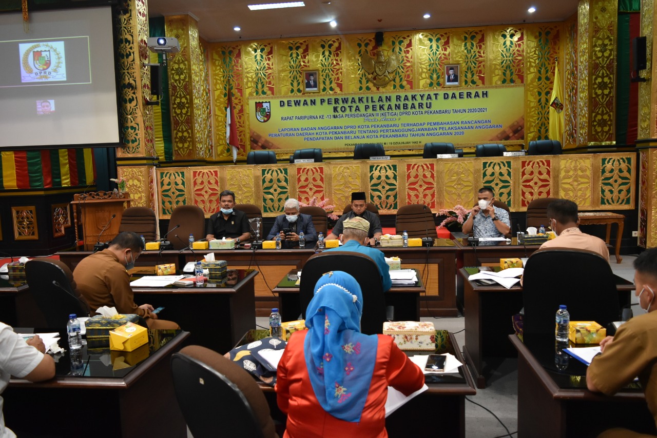 Suasana Rapat Pansus Retribusi Sampah DPRD Pekanbaru dengan DLHK Pekanbaru di ruang Paripurna DPRD Pekanbaru, Senin (2/8/2021).