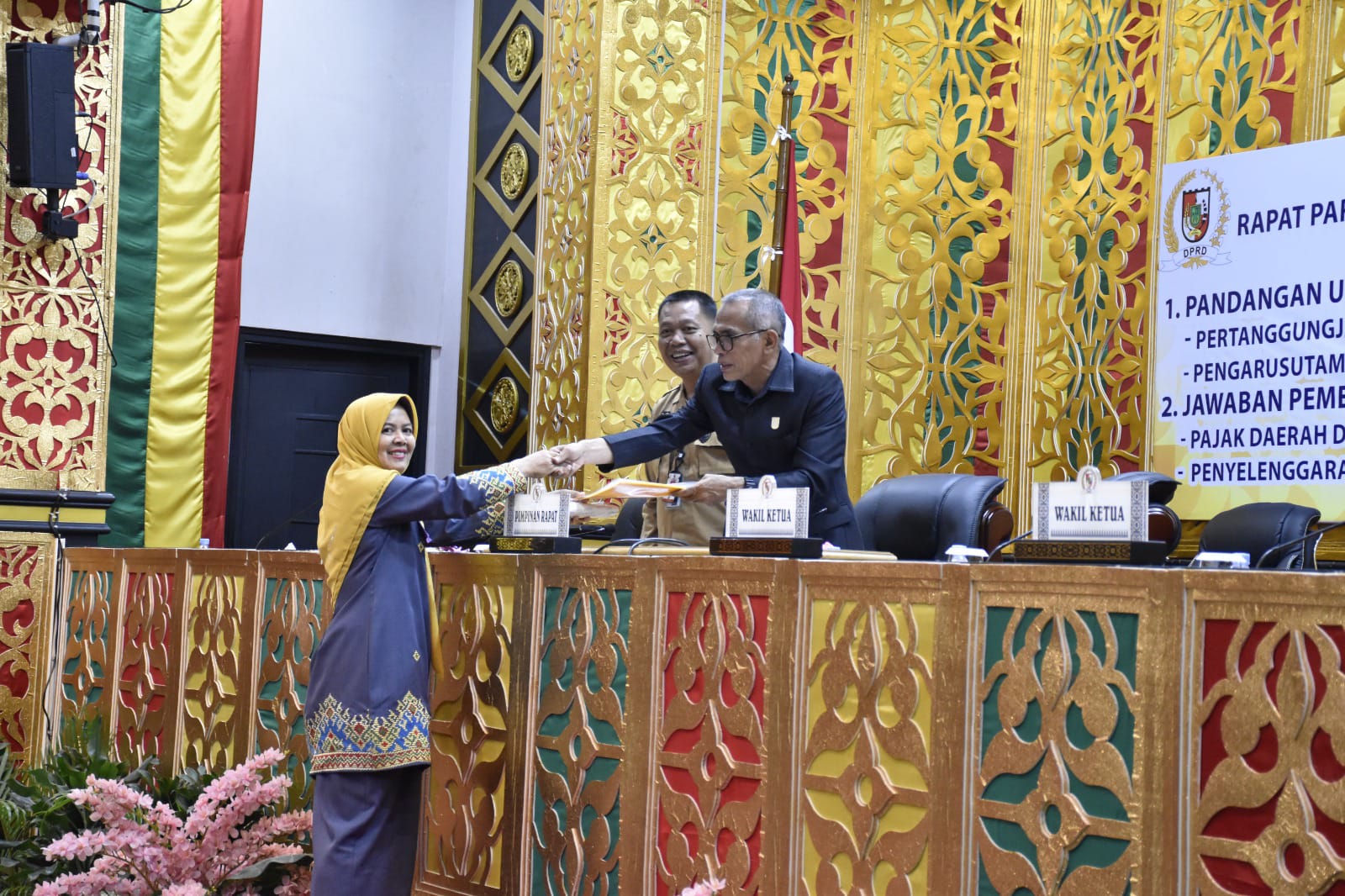 PEKANBARU- DPRD Pekanbaru menggelar Rapat Paripurna Pandangan Umum Fraksi, tentang Ranperda Pajak dan Retribusi Daerah, Senin (17/7/2023). Paripurna ini dipimpin Wakil Ketua DPRD Pekanbaru Ir Nofrizal MM, serta para anggota dewan lainnya.