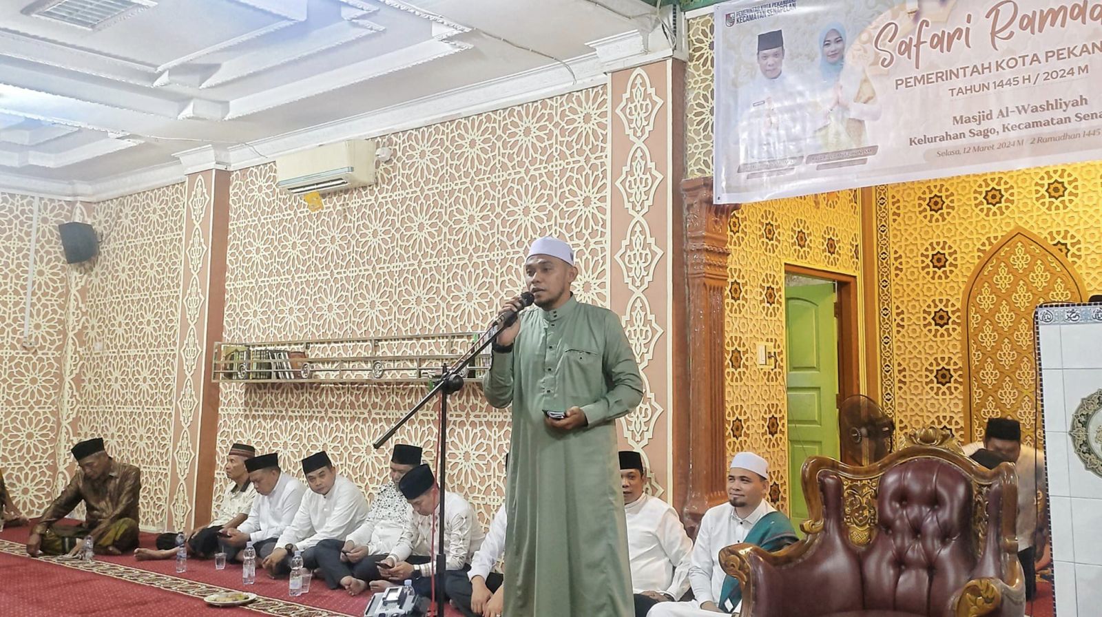 PEKANBARU - Wakil Ketua DPRD Kota Pekanbaru, Ginda Burnama, ST., MT, melaksanakan safari Ramadhan 1445 H/2024 M di Masjid Al-Washliyah, Jalan Samratulangi, Kelurahan Sago, Kecamatan Senapelan, pada Selasa (12/3) malam.