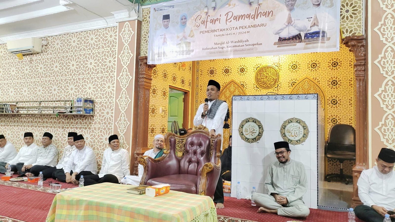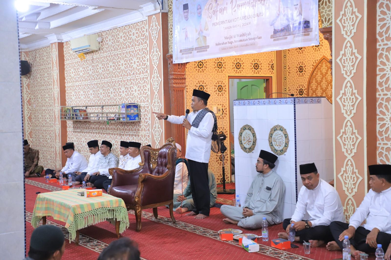 Kedatangan Ginda mendampingi Penjabat (Pj) Wali Kota Pekanbaru, Muflihun, S.STP., M.AP, dan Ketua TP PKK Pekanbaru, Raja Rilla Muflihun, SM dalam rangkaian safari Ramadhan 1445 H/2024. Tampak pula Sekretaris Daerah Kota Pekanbaru, Indra Pomi Nasution, ST., M.Si, Camat Senapelan, Wira Setiadi, S.STP., MPA, serta sejumlah kepala OPD di lingkungan Pemko Pekanbaru, dan Lurah se-Kecamatan Senapelan.