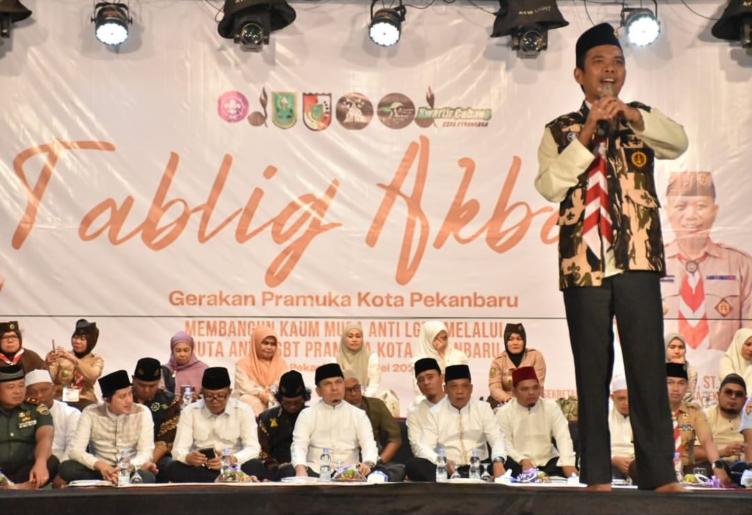Gema selawat Nabi terdengar khidmat di sepanjang Jalan Gajah Mada, Pekanbaru, sebagai pembuka tausyiah agama yang dibawakan oleh Ustaz Abdul Somad (UAS), Jumat (10/5/2024). Tabligh Akbar ini mengusung tema “Membangun Kaum Muda Anti-LGBT melalui Duta Anti-LGBT Pramuka Kota Pekanbaru”, sebuah inisiatif Pemko Pekanbaru yang bertujuan menjaga generasi muda dari pengaruh negatif.