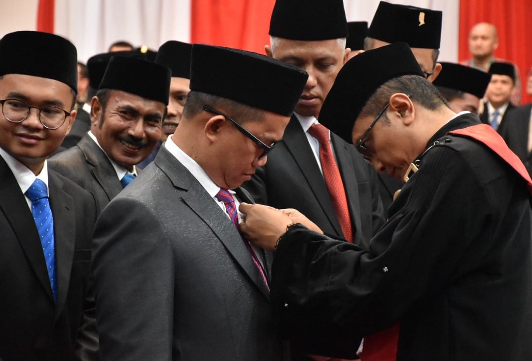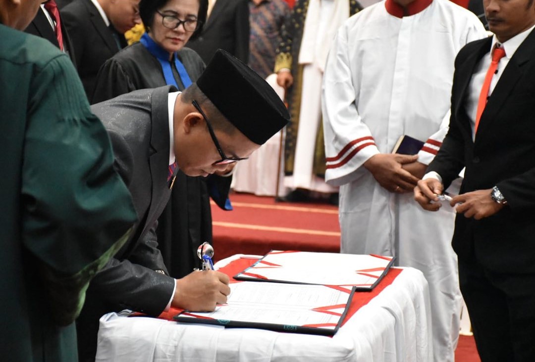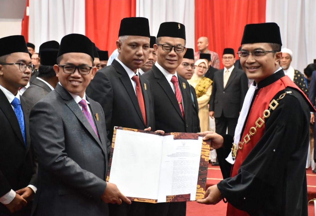 PEKANBARU - Jumat (6/9/2024) menjadi hari bersejarah bagi Kota Pekanbaru. Ketua Pengadilan Negeri Pekanbaru, Raden Heru Kuntodewo, SH, MH, secara resmi melantik dan mengambil sumpah 50 Anggota DPRD Pekanbaru terpilih untuk masa jabatan 2024-2029. Pelantikan ini berlangsung dalam suasana khidmat di Rapat Paripurna Istimewa yang digelar di ruang rapat Paripurna Gedung DPRD Kota Pekanbaru.