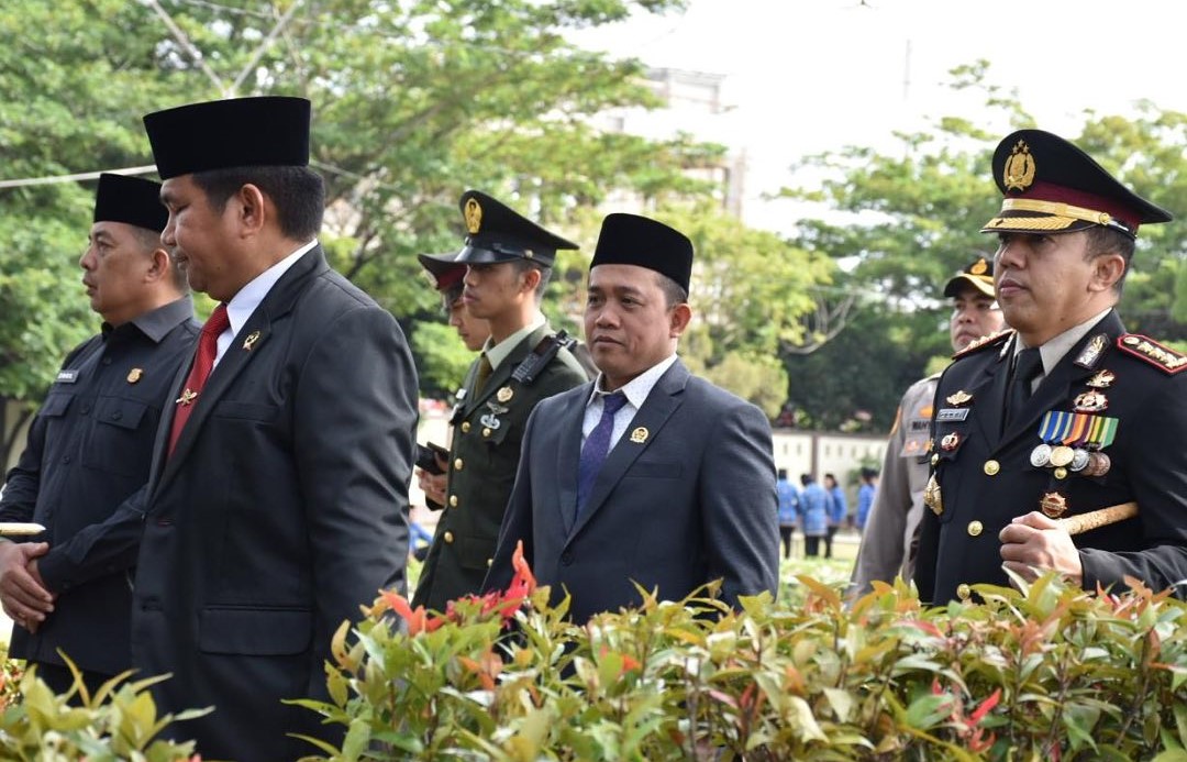 PEKANBARU - Ketua DPRD Kota Pekanbaru, Muhammad Isa Lahamid, ST., MH, turut menghadiri Upacara Ziarah Nasional yang digelar dalam rangka memperingati Hari Ulang Tahun (HUT) ke-79 Tentara Nasional Indonesia (TNI), Jumat (04/10/2024). Acara berlangsung khidmat di Taman Makam Pahlawan (TMP) Kusuma Dharma, Jalan Jenderal Sudirman, Pekanbaru, yang menjadi saksi bisu perjuangan para pahlawan dalam mempertahankan kemerdekaan.