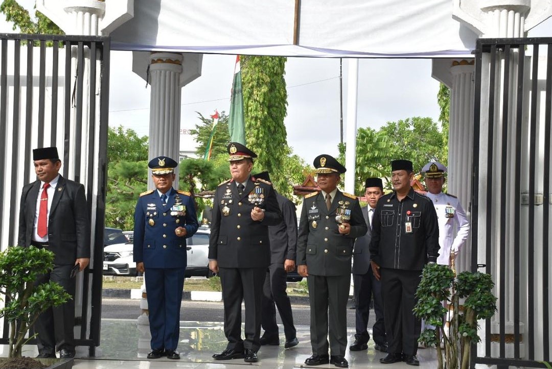 Acara ini turut dihadiri oleh berbagai pejabat penting, termasuk Pj. Gubernur Riau yang diwakili oleh Kepala Badan Kesbangpol Jenri Salmon Ginting, A.P., M.Si, Kapolda Riau Irjen. Pol. Mohammad Iqbal, S.I.K., M.H, serta Danrem 031/WB Brigjen TNI Sugiyono, dan Marsma TNI Feri Yunaldi, S.E., M.Han dari Lanud RSN.