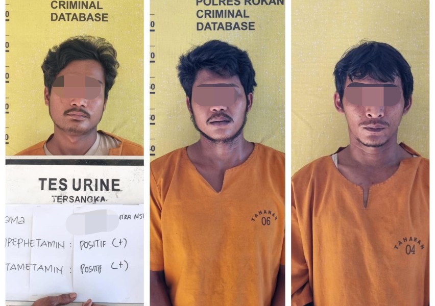 Ketiga tersangka juga menjalani tes urine dengan hasil positif mengandung Methamphetamine dan Amphetamine.