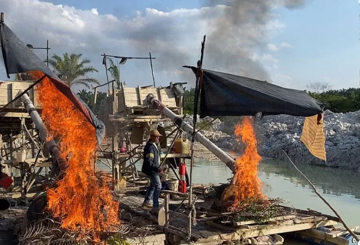 Meski tidak menemukan pelaku di tempat, petugas tetap mengambil tindakan tegas dengan melakukan pemusnahan rakit-rakit tersebut melalui pembakaran langsung di lokasi, untuk mencegah digunakan kembali.