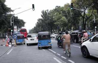 Pria Bugil Bersepeda Santai di Sekitar Monas