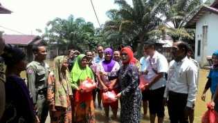 Tinjau Banjir di Buluh Cina Kampar, Septina Bagikan 100 Paket Sembako