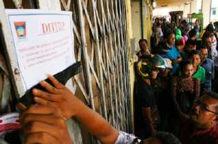 GILANGNEWS.COM - Yumin Sianipar, salah seorang wajib pajak di Samsat Pelalawan terlihat kesal l.
