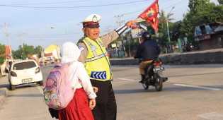 Gilangnews.com - Aiptu Agus Dwi Santoso (58) masih setia menyeberangkan anak.