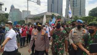 GILANGNEWS.COM - Kapolda Metro Jaya Irjen Fadil Imran menemui massa buruh yang demo di Patung Kud.
