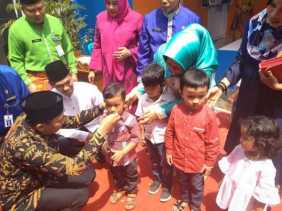 Peresmian Posyandu, Firdaus Berikan Vitamin ke Balita di Bukit Raya