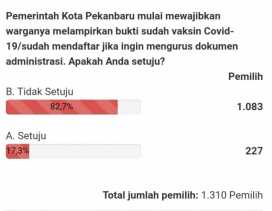 Polling Ditutup, 82 Persen Pemilih Tak Setuju Pemko Pekanbaru Wajibkan Bukti Vaksin untuk Urus Dokum