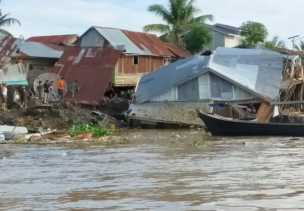 Longsor di Seberang Tembilahan, Rumah Warga Amblas ke Sungai Indragiri