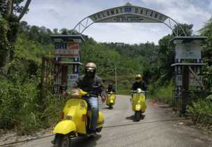 GILANGNEWS.COM - Sejumlah pehobi motor vespa melakukan tur akhir pekan. Destinas.
